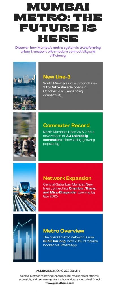 Mumbai’s metro network is shaping the way the city lives, works, and moves. And for those navigating this ever-changing map, platforms like GetSetHome make it easier to find homes in neighbourhoods that keep you connected to both your workplace and the city’s vibrant lifestyle.